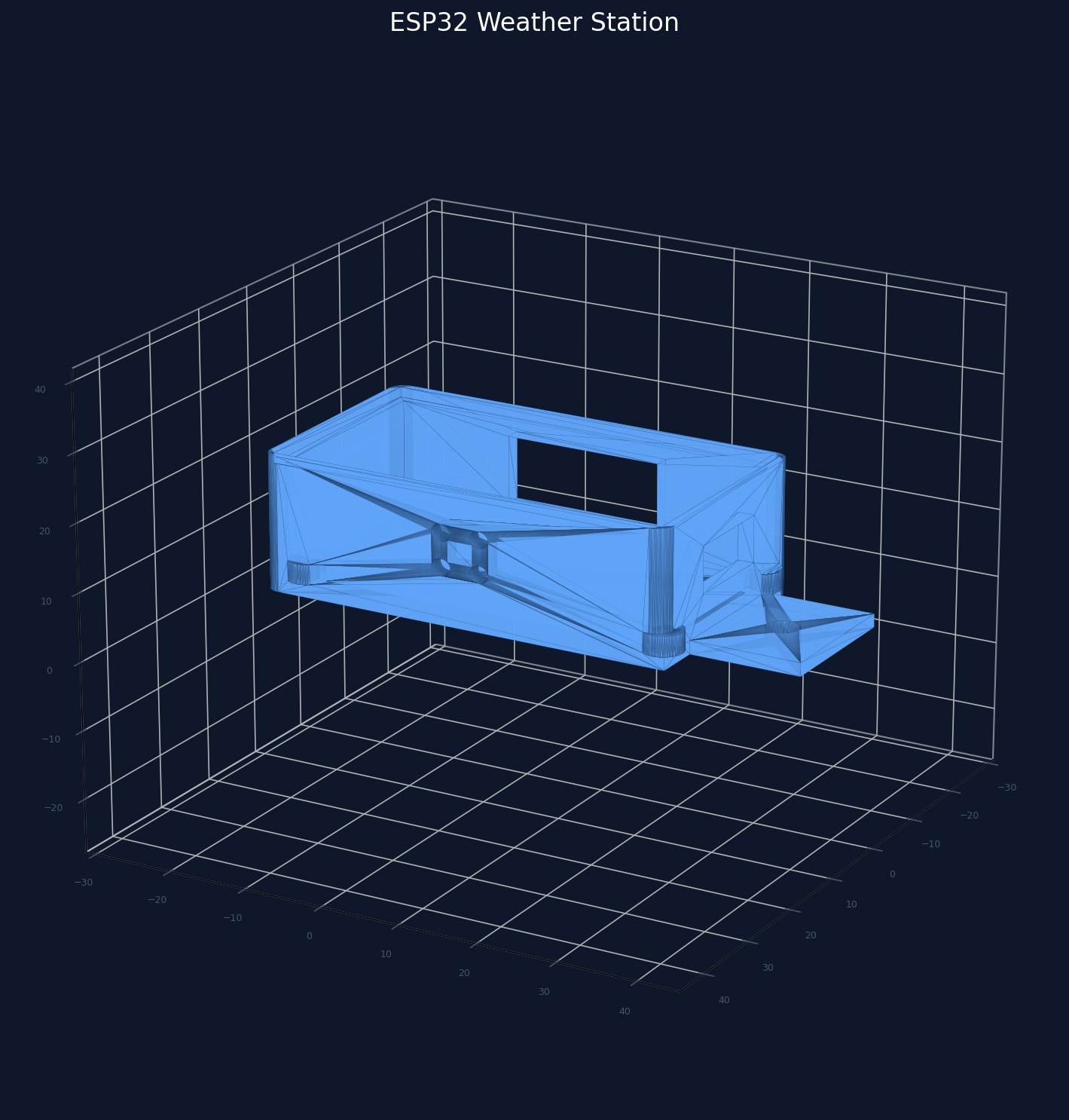 >ESP32 weather station outdoor enclosure with ventilation louvers for BME280 sensor, wall mount, USB-C port